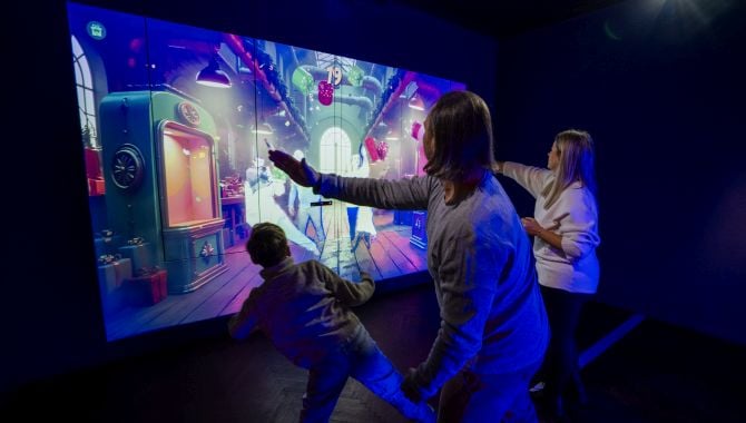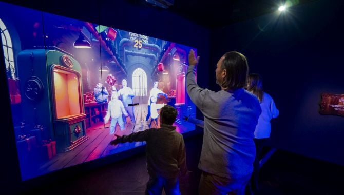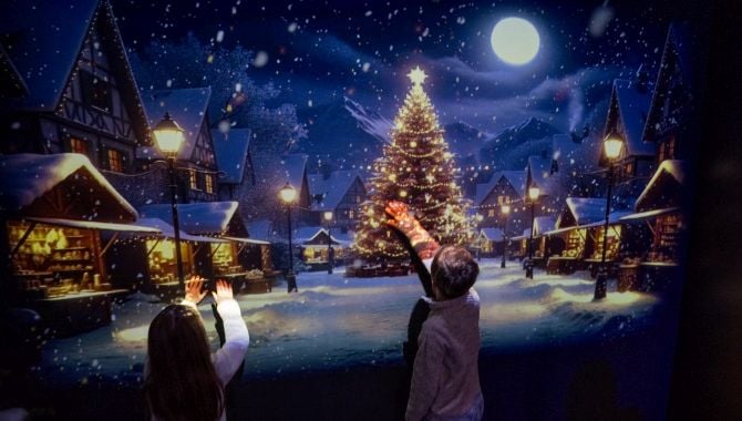In the ‘Gift Express’ room, Christie Captiva projectors transform three walls into a lively canvas where children can help catch flying gifts and wrap them, immersing participants in the festive mission. Meanwhile, in the ‘Twinkle Studio’, the projectors bring children’s creativity to life by displaying their decorated presents and ornaments as interactive projections around the cosy living room that respond to touch. The experience also features a snowball fight with Jack Frost, a sleigh ride with Santa, and concludes with a brief VR segment.
