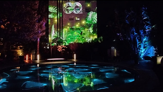 Two Christie M 4K25 RGB projectors brought the historic building to life with vibrant and dynamic visuals created by VJ Draft, in collaboration with GQ Portugal. A third M 4K25 RGB pure laser projector illuminated the venue’s pool, adding another layer of sophistication.