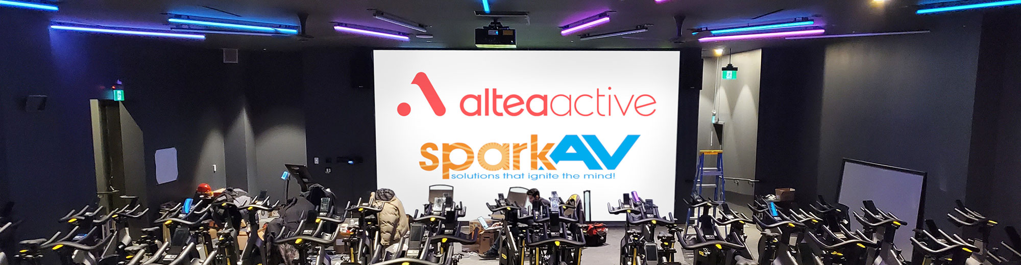 Altea Active retained sparkAV – an experienced audiovisual design and integration firm based in Toronto and Montreal – to select and install AV technology into the club’s various amenities, including the cycle studio. “sparkAV was to design and implement immersive and state of the art technology solutions that tied in all aspects of AV, network and CCTV, with tie-ins to modern fitness technologies and customer engagement,” says Derek Shama, sparkAV’s president and co-founder. The goal was to bring Altea Active’s stated vision “of an elevated fitness experience in an environment suitable for both physical and social wellness” to life.