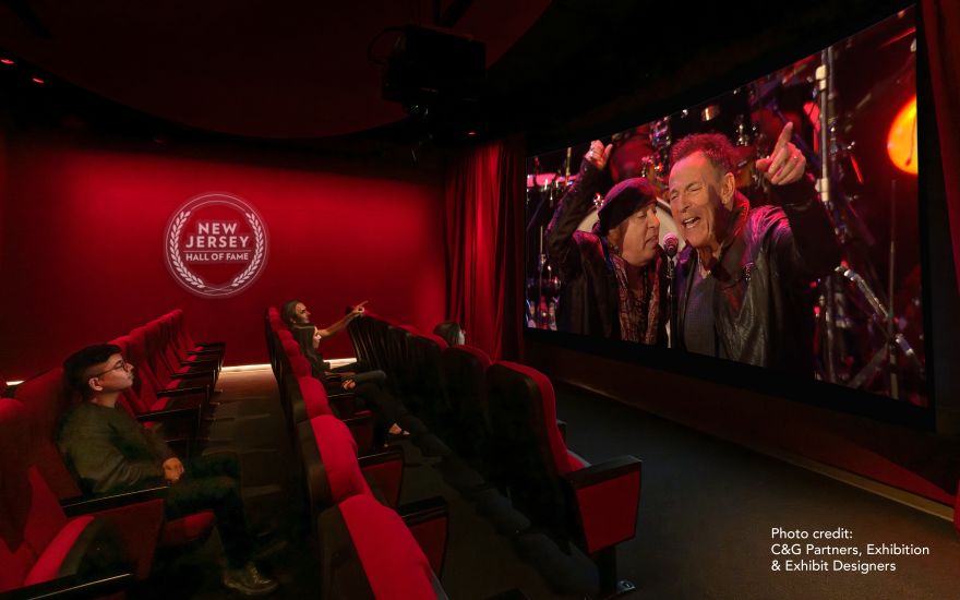 JB: The Jersey Proud Theater seats 30 visitors to watch a short film featuring Hall of Famers through scenes from films and television, musical performances, acceptance speeches, and historic moments.