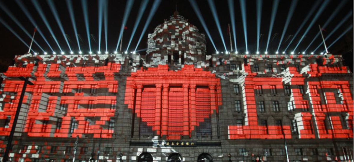 吸引众人眼球的第12号浦东发展银行大楼和13号楼海关大楼,这两座建筑被指定用于午夜的3D建筑投影。