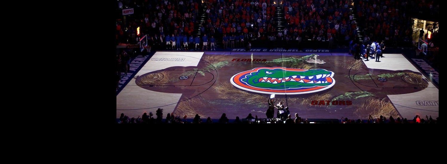 当赛前介绍的灯光渐暗,佛罗里达大学奥康奈尔中心的Exactech赛场为佛罗里达大学短吻鳄队的粉丝们领略了一场无与伦比的视觉盛宴。佛罗里达大学与值得信赖的合作伙伴Quince Imaging携手合作, 利用了科视Christie® Boxer 2K30 3DLP®投影机及科视Christie® Pandoras Box Manager显示虚拟鳄鱼、数十条NCAA及东南联盟SEC的冠军横幅、运动员照片及统计数据,为粉丝及学生运动员带来独一无二、激动人心的体验。