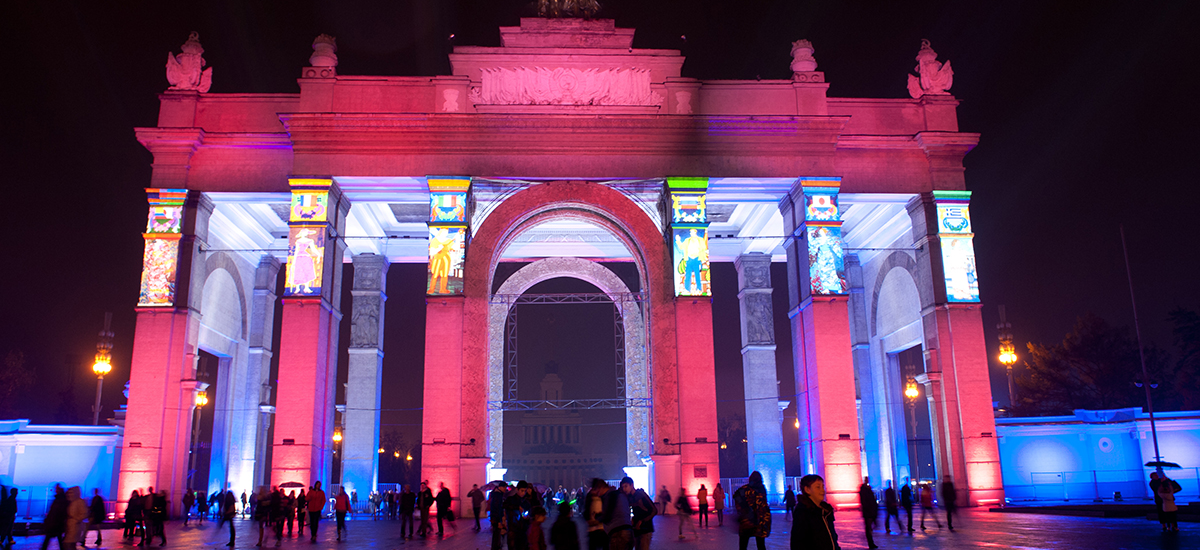 Le quatrième festival international « Cercle de lumière » de Moscou, un événement culturel majeur de la ville, est déjà devenu le plus grand de son histoire grâce au savoir-faire de la célèbre entreprise ETC Russie, qui a ravi les spectateurs avec des transformations colorées créées par les technologies de projection vidéo et d'éclairage les plus performantes et les plus lumineuses du marché. Du 10 au 14 octobre dernier, ETC Russie et Christie ont illuminé Moscou sur sept sites avec 70 projecteurs tri-DLP Christie et une luminosité totale de plus de 1,34 million de lumens. Cette année, Christie a également été le partenaire technique du théâtre Bolchoï où, chaque soir, sur la façade historique, 18 projecteurs Christie S+22K-J ont été utilisés par ETC Russie pour projeter quatre œuvres créées par Cosmo AV et H3O Concepts. Le 14 octobre, la cérémonie de clôture du festival a été marquée par un programme supplémentaire de projection vidéo créé spécialement pour l'occasion.