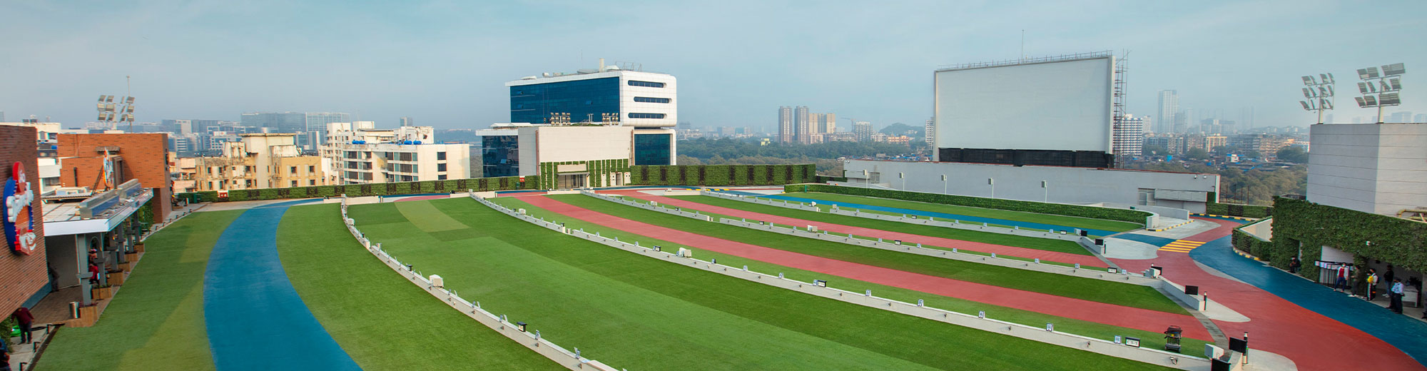 这家免下车剧院位于孟买新兴金融中心 Bandra Kurla Complex,设在 Reliance Industries 开发的市中心高档零售商场 Jio World Drive 的顶层平台。免下车剧院持前卫的观影理念,可容纳 290 辆汽车,采用先进的放映技术。剧院配有一块 25.5 米宽的巨型银幕,而电影音频是通过汽车的音响系统接收调频信号来播放的。