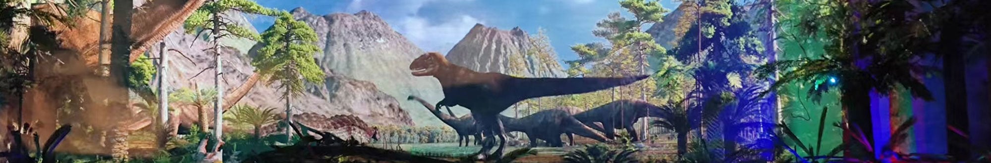 白垩纪恐龙投影区通过六台科视Christie DWU880-GS投影机构建全景动态场景(照片由建业显示提供)