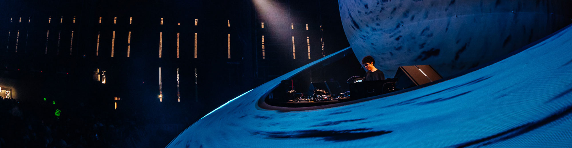 “土星幻境”要求将土星及其光环投射到 DJ 所在的位置。为了达到这一效果,On Projeções 公司采用了两台 Griffyn 4K50-RGB 纯激光投影机,将一个30 x 20 米的区域用模拟土星环境的图像覆盖,整体分辨率达到了 3840 x 2160 像素。