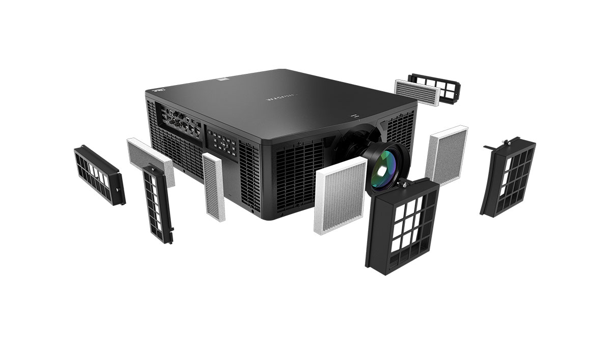 虽然 Jazz 系列投影机无需滤网即可运行,但某些特殊环境可能需要额外防护。如您的投影机暴露于超过常规室内灰尘浓度的环境(如尘土、沙粒、雾气、烟雾、烟雾机效果或烟火特效),我们建议使用防雾滤网。滤网可有效减少特效设备产生的油性残留物影响,有助于您的投影机保持出色性能。