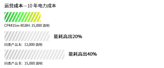 CP4415m-RGBH 的能效比同类产品高出 30%,每瓦可产生 14.2 流明,显著降低能源成本与总体拥有成本。