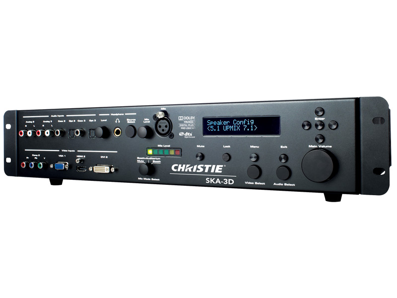 科视Christie® SKA-3D 以不亚于故事片放映的非凡视效和音效,呈现多样化内容,如宣传预告片,以及来自蓝光光盘播放机、游戏手柄、卫星接收器、计算机和多种 2D 和 3D 信号源的内容。这款性能强劲的音视频处理器搭载先进的处理技术,能够从 HDMI 信号中提取高品质无损音频(如 Dolby TrueHD® 和 DTS-HD Master Audio® 信号),继而集成到影院音频系统中。